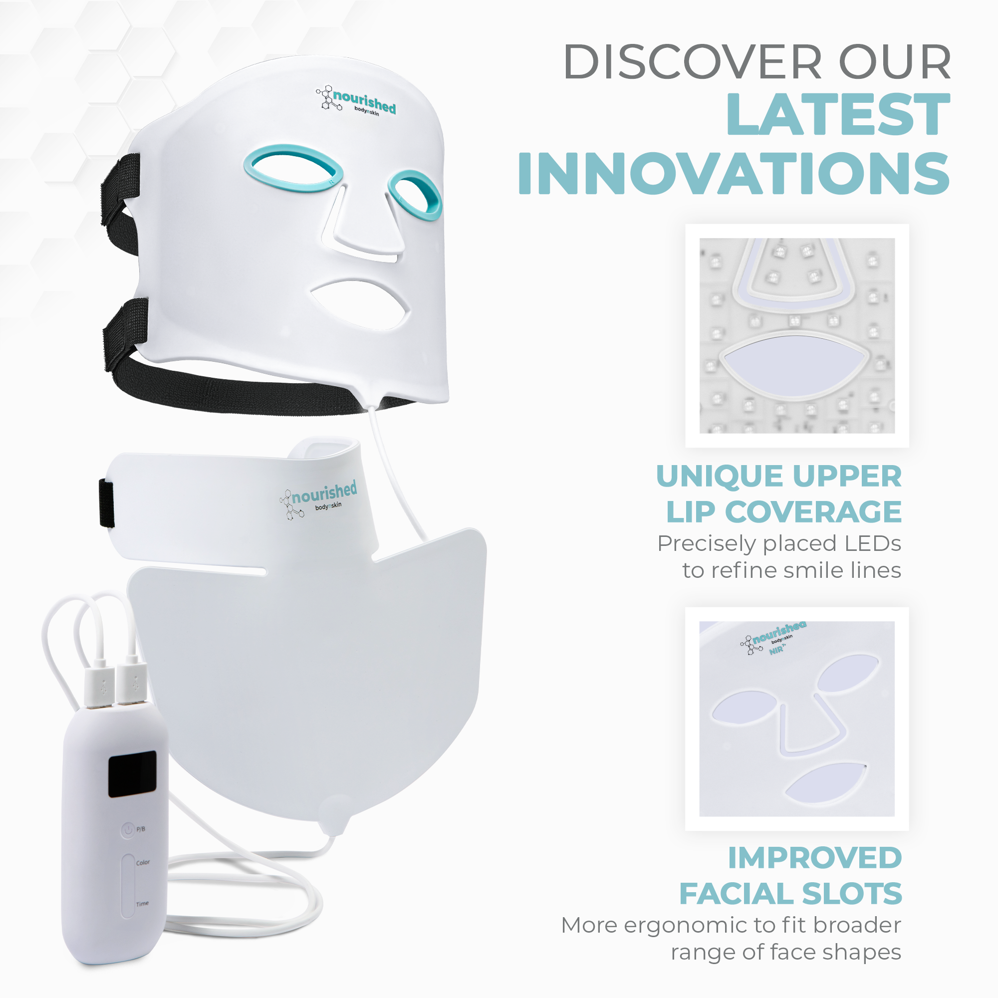 You asked, we listened. Our classic-favorite 8-mode LED face and neck mask just got even better! In addition to its upgraded ~35mW/cm² Irradiance Value for more effective delivery and results, it now also features: