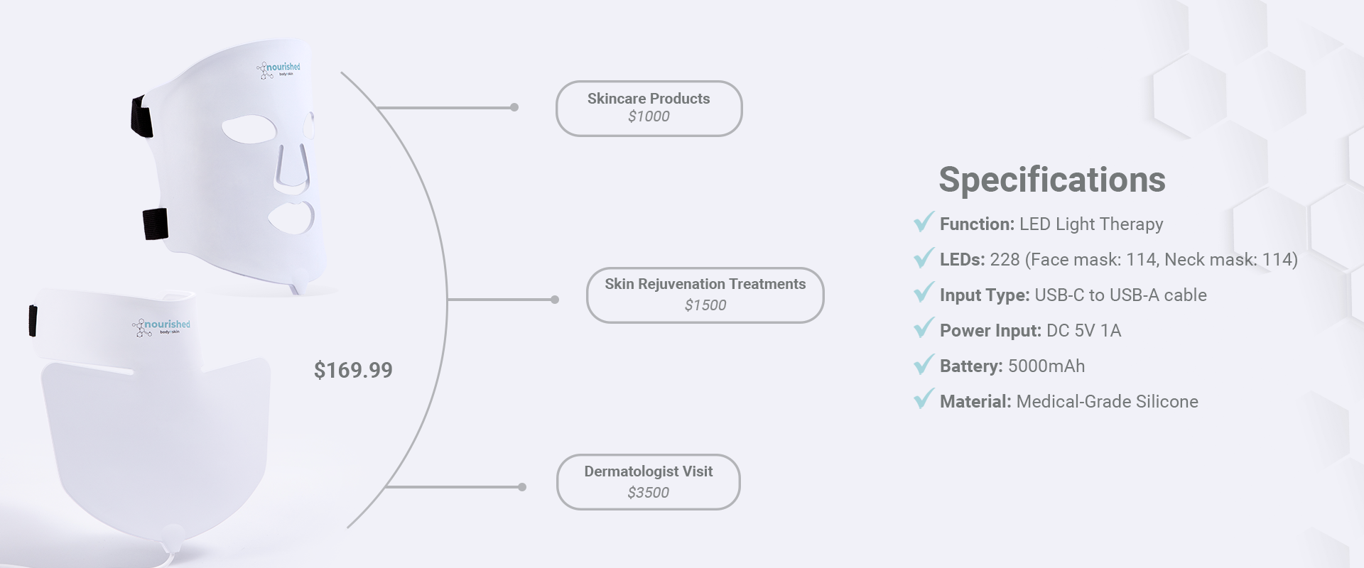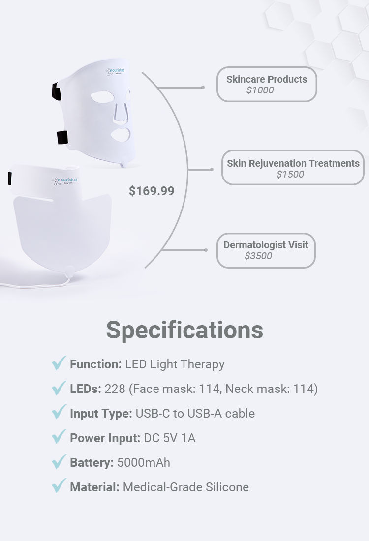 | LED Quantity: | 228 (Face mask:114, Neck mask: 114) |